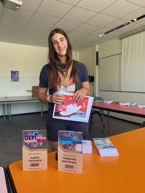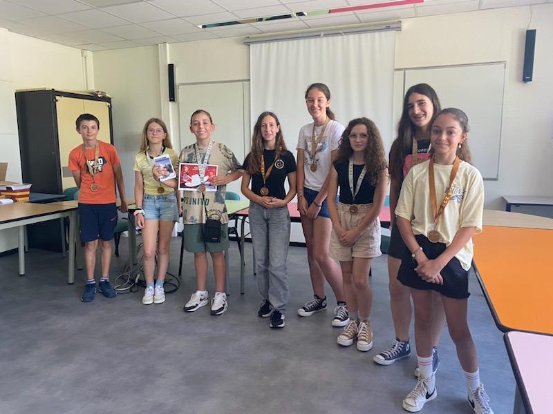 Les 3 premiers de chaque niveau se sont vu remettre une médaille (d’or, d’argent ou de bronze) et nous félicitons tout particulièrement Charline Dufour, élève de 5e, qui est arrivée 1ère du collège et 29e au rang national ! C’est la première année que nous comptons une lauréate nationale parmi nous ! Elle a remporté, en plus du reste, deux trophées (local et national) ainsi que des écouteurs connectés et une enceinte.